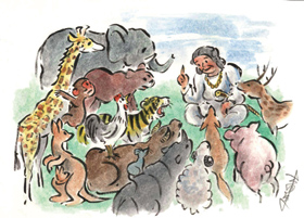 プラネタリウムの投影で使用している物語の原画などを、入り口周辺のショーケースや壁一面に飾ります。物語を見たことがある人もない人も、ぜひじっくりと原画をお楽しみください。